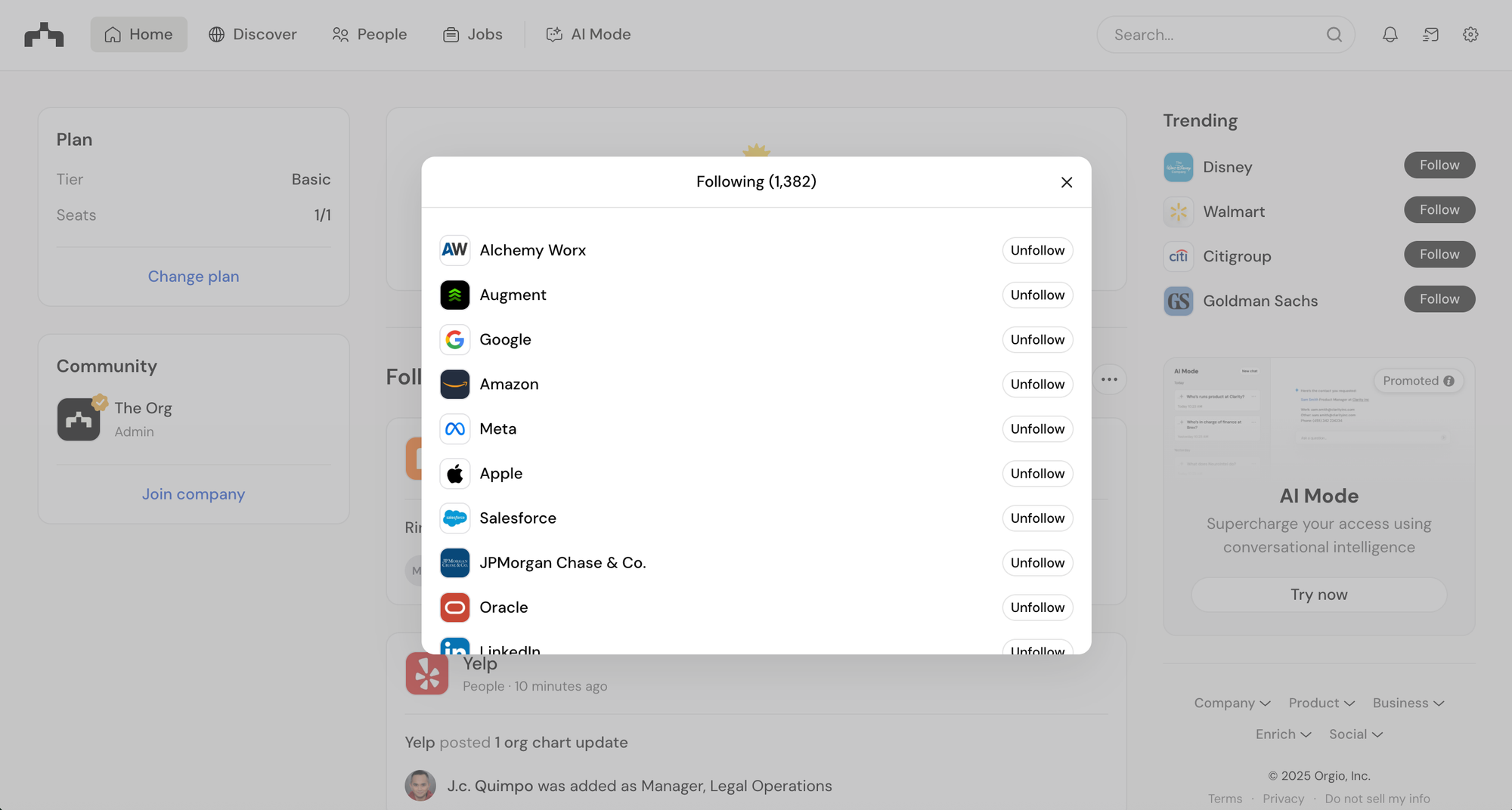 It is now easier than ever to view and edit the companies that you follow on The Org. This was one of our most requested features and we're glad to finally get it live!